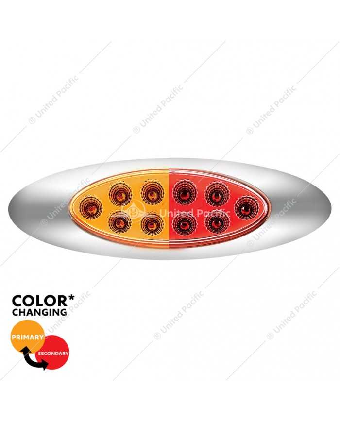 UP35958 - 10 LED Oval Double Fury Light With Clear Lens & Chrome Bezel (Clearance/Marker) - Amber & Red LED/Clear Lens