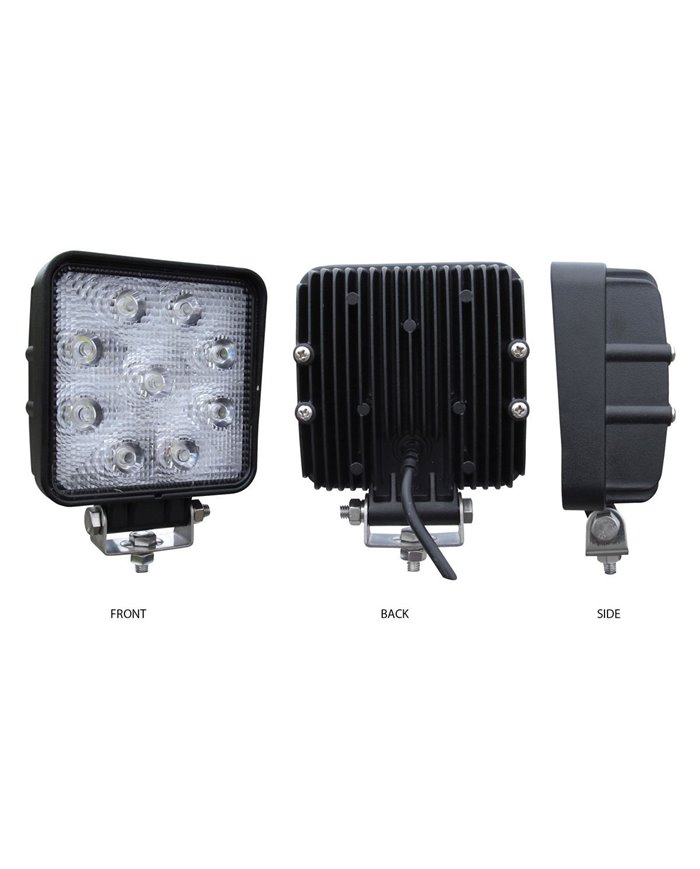 Universal White Square Work Light - Clear Lens - Black Housing (9 Diodes) - 900 Lumens