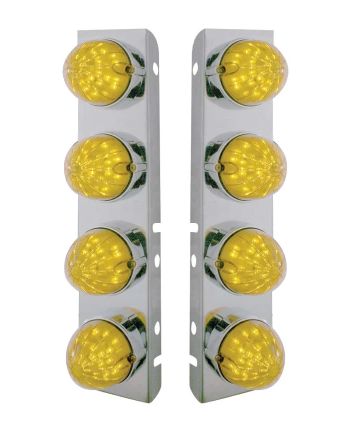 UP37468 - SS Front Air Cleaner Bracket With 8X 19 LED Bullet Style Lights & Bezels For Peterbilt-Amber LED & Lens