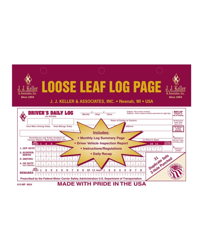 DRIVER DAILY LOG W DETAIL DVIR LOOSE LEAF FORMAT A 2-PLY W/